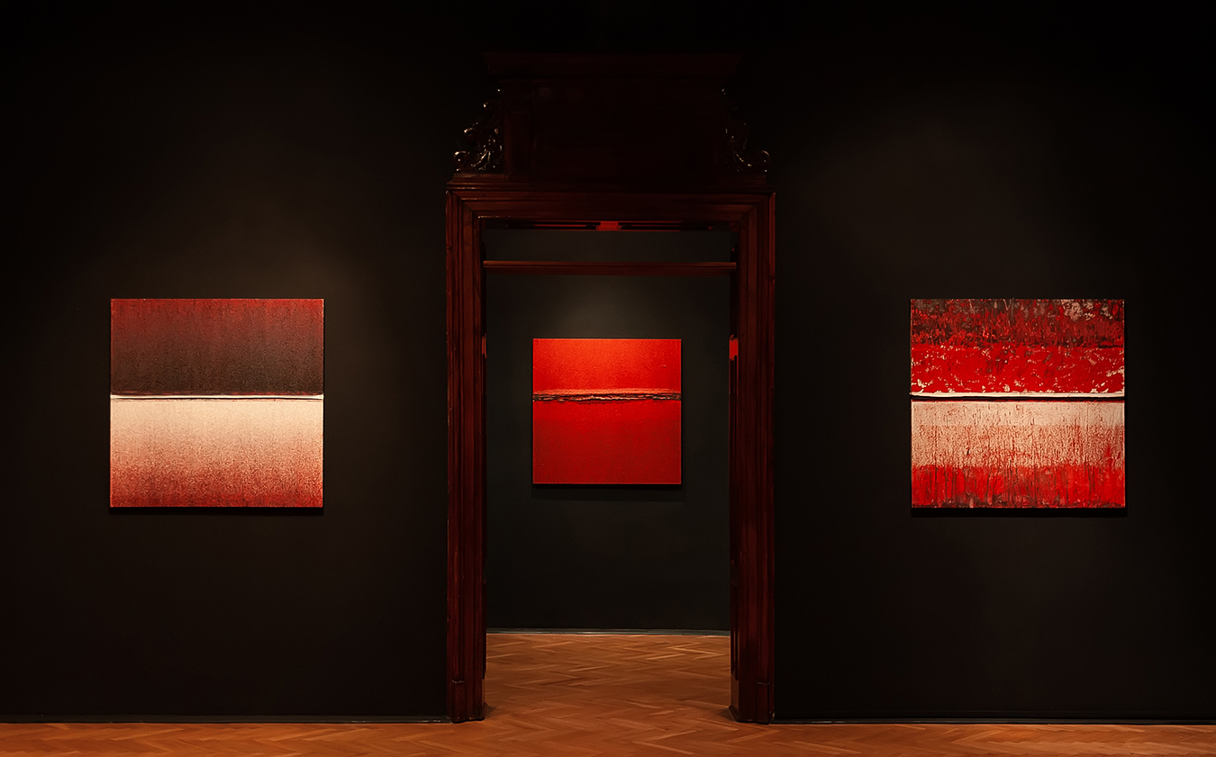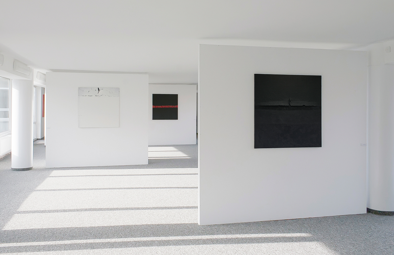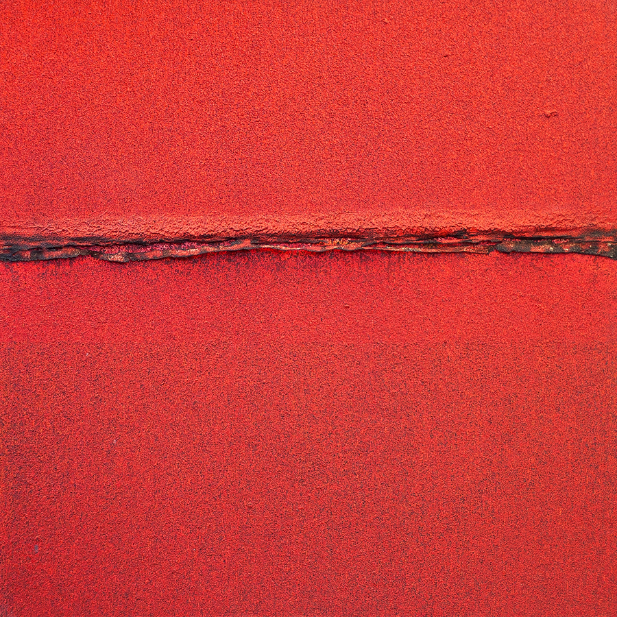 The painting set was created as a result of experiments on the surface of the canvas. The images have a unified 1x1m format. The compositions are very simple, mathematically drawn, stiff, less unhampered. Each image is characterized by a narrow range of colors, so the attention is focused on the meaning of the matter that goes beyond the two dimensions. The tears running through the center of the paintings are framed with subsequent layers of paint visible in the cross-section which are representing successive “lives” of the painting.