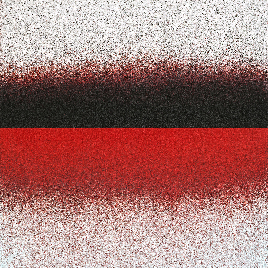 This symbolic rupture is an expression of breaking the dictatorship of the finished, unmitigated plane of image. This narrow gap is supposed to let to see the place where destruction and construction meet, where the absolute exists. The paintings were made with the gesture of a hand that splashed the paint with a brush onto the canvas without the tool's physical contact with the surface. The way the spots fall into place was determined by gravity but main arrangement directly follows artist intends.